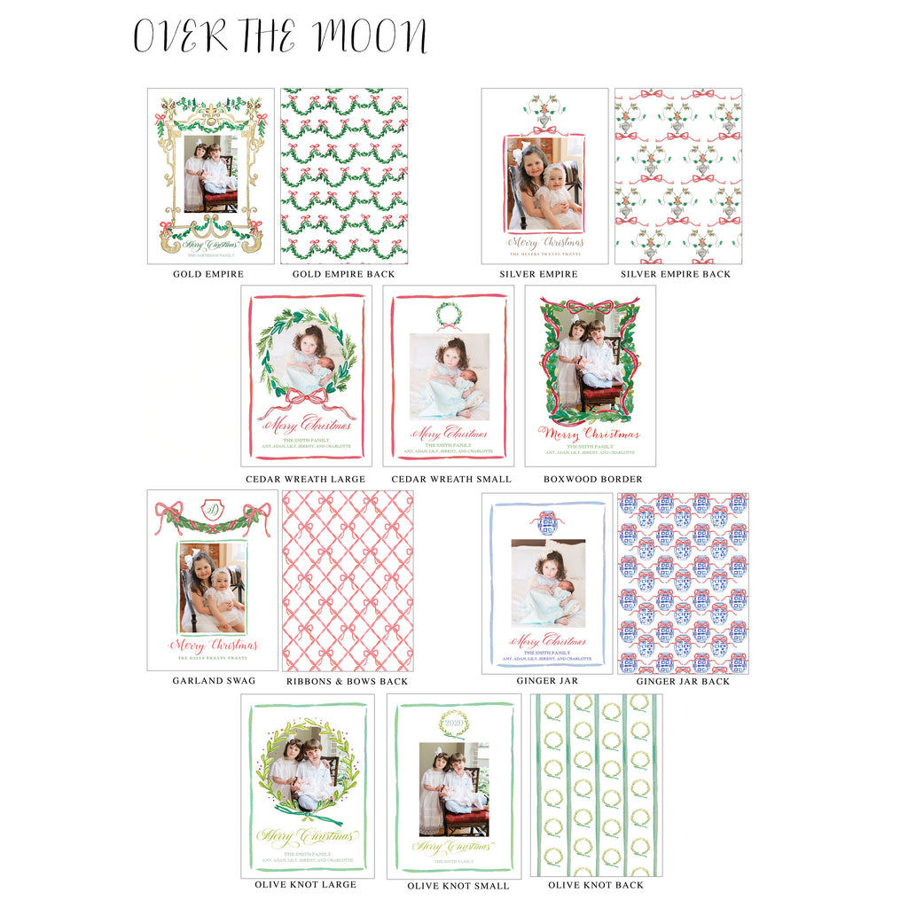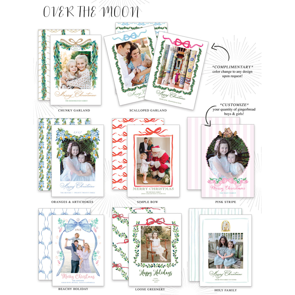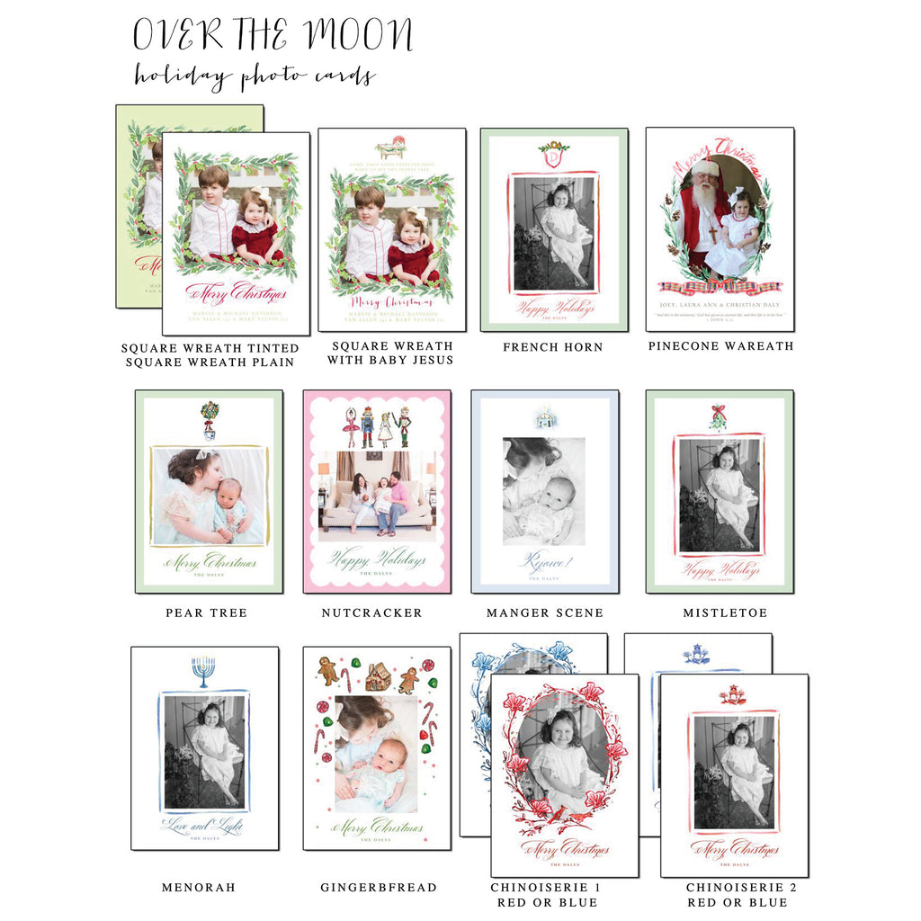 TO ORDER: order deposit online, email card style, paper style, quantity, photo, text you would like, shipping address if applicable and any additional information to la@overthemoongift.com.