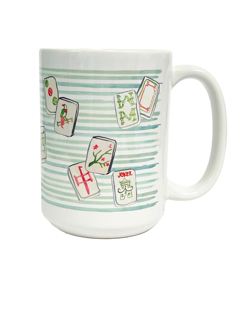Start your mornings the playful way with this Mahjong Mug. Crafted to hold 15 oz of your favorite brew, it's perfect for game lovers who enjoy a sip between moves. Its bold design adds fun to your coffee routine, making every cup feel like a winning hand.